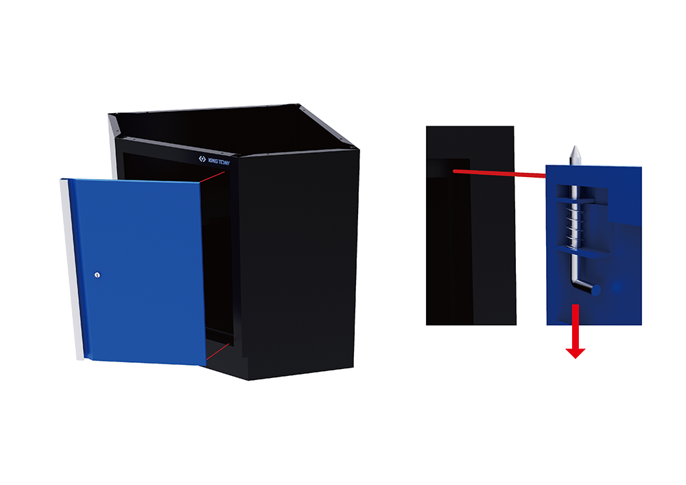 再把门挡零件安装上去,由内部的方向从上方锁固螺丝,进而让转角下层柜更加稳固。