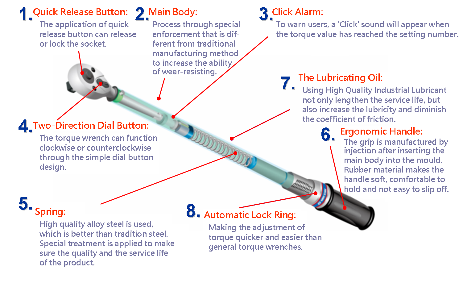 In order to assure the accuracy of the torque value and avoid troubles while using, do not arbitrarily disassemble any components inside the main body.