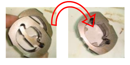 雙鎚結構的Pin組合在升降室時,中間是懸空,打擊後容易造成Pin的斷裂,新的結構是將Pin整個組立在半圓槽裡,增加其依靠 。